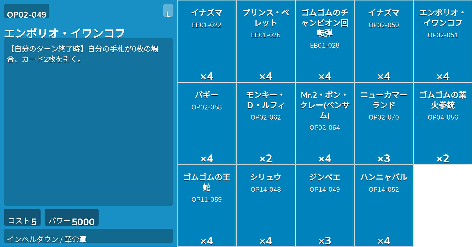 | OP02-051 | エンポリオ・イワンコフ | 4 |