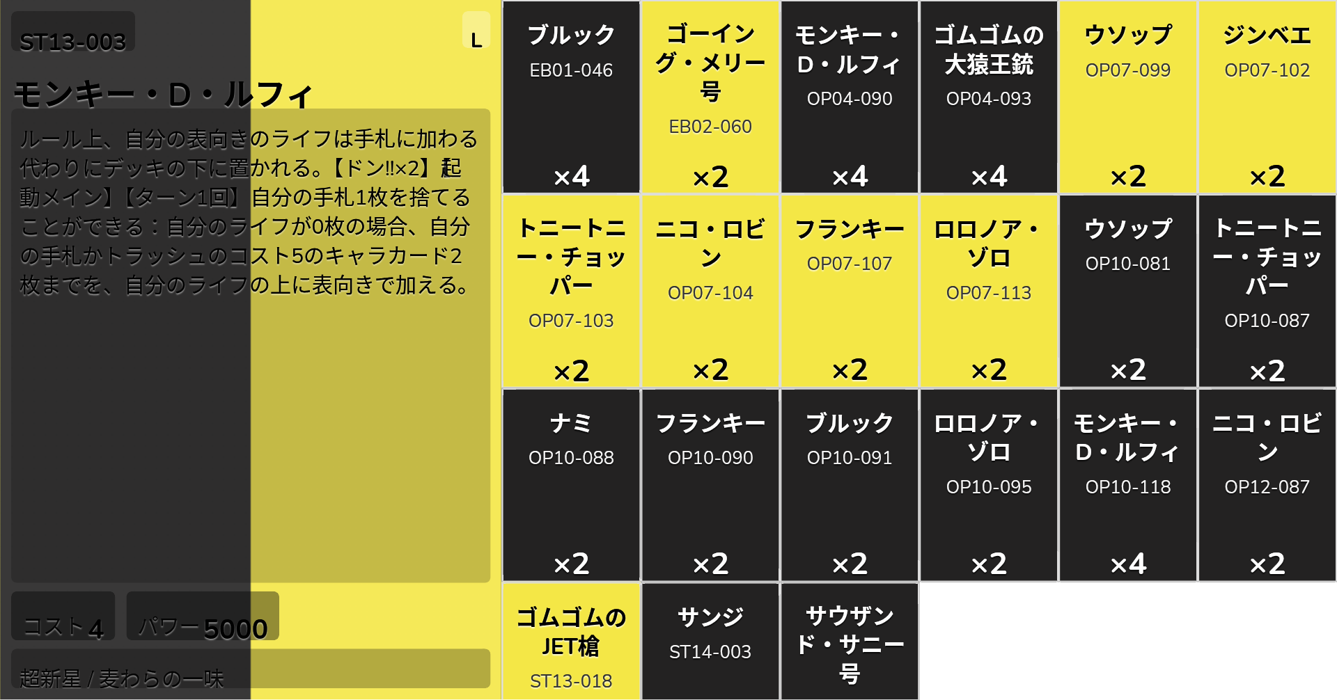 | ST13-018 | ゴムゴムのJET槍 | 2 |