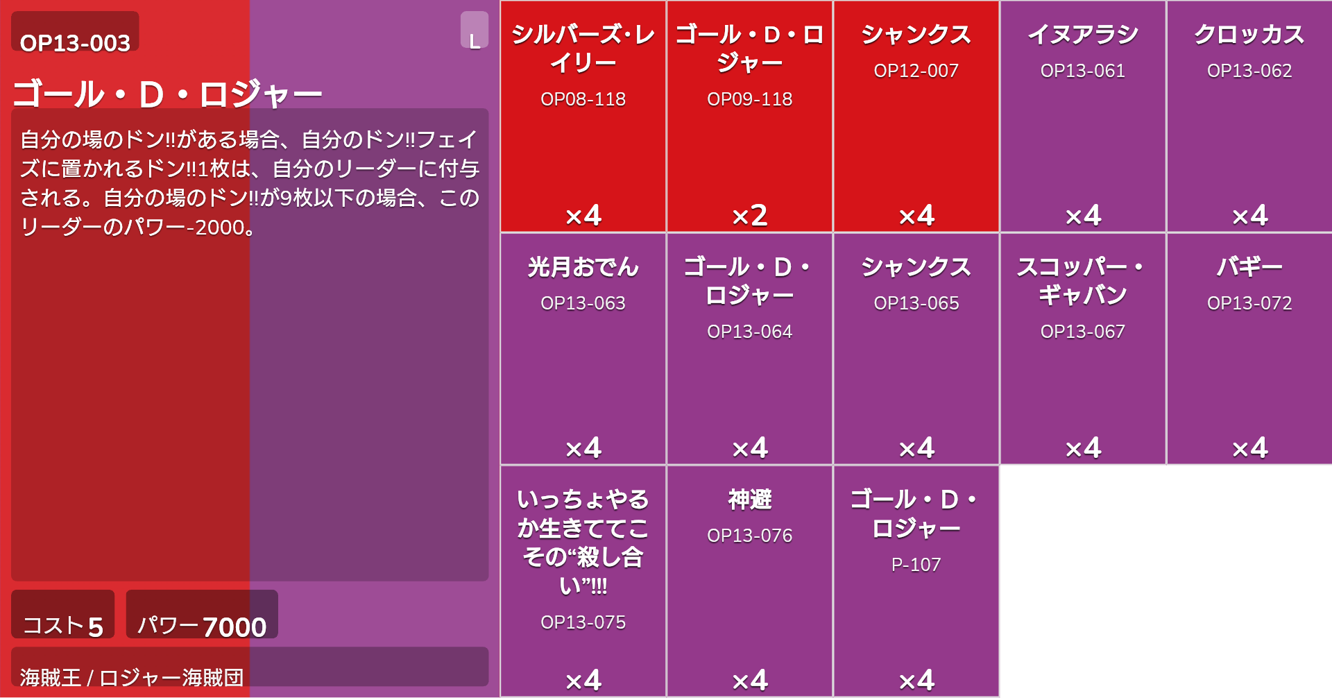 | OP13-064 | ゴール・D・ロジャー | 4 |