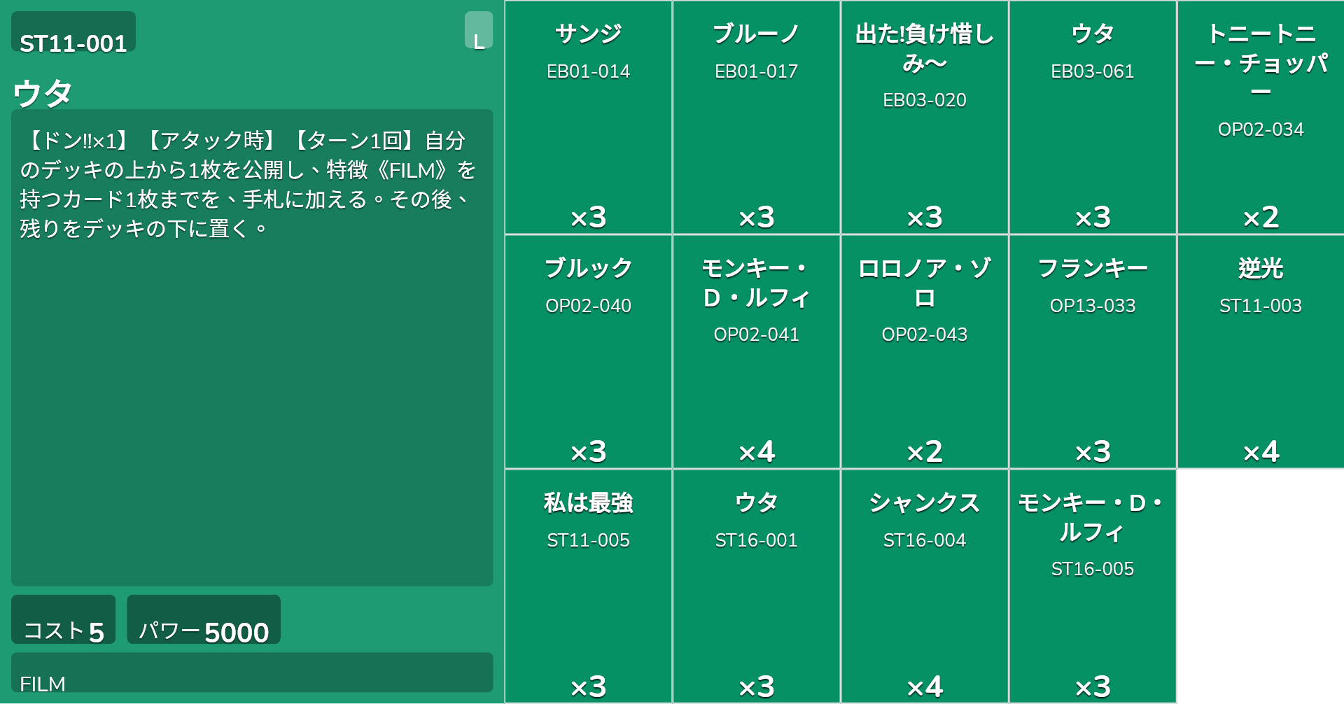 | ST16-005 | モンキー・D・ルフィ | 3 |