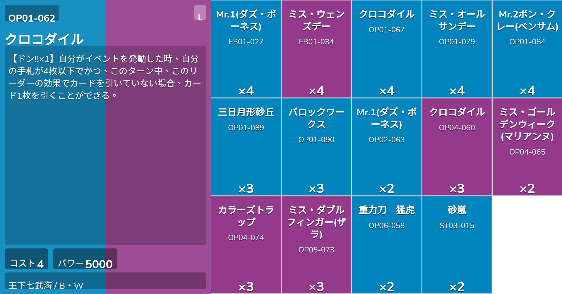 | OP01-084 | Mr.2ボン・クレー(ベンサム) | 4 |